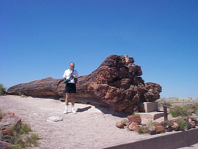 Click Pictures to Enlarge, Use Browser Back Button to Return Vacation 2001 Day: 12 Date: 05/30/2001 Left Meteor Crater and headed east on I40. Went back through Winslow and turned south on 180 at Holbrook. Drove on 180 to the entrance to the Petrified Forest National Monument. Toured the visitor center then continued north through the park stopping at various viewing spots. The north end of the park is in the Painted Desert. Had lunch at the Painted Desert Visitor center. Got back on I40 west back to Holbrook. Stopped outside town at a truck wash and got the RV washed. Got a spot to stay the night at the Holbrook KOA campground. Went shopping in town, came back to the campground and did laundry. We don't see many campgrounds north east of here where we are headed for so you may not hear from us for awhile. Pictures: Petrified Forest, Painted Desert and a Motel in Holbrook (The Tepees are the rooms).