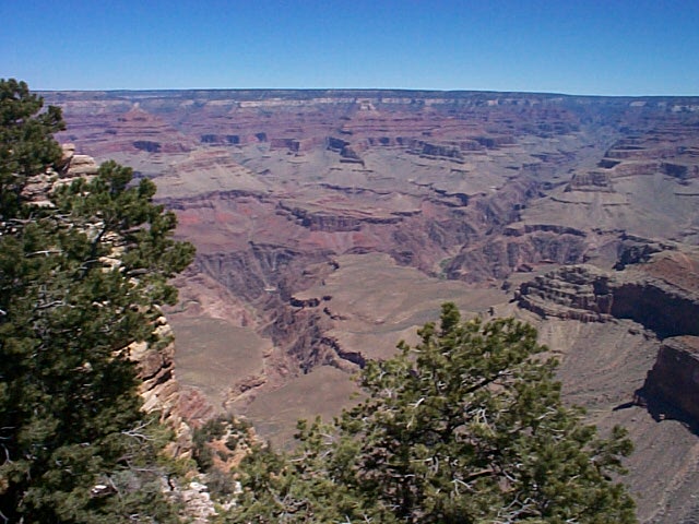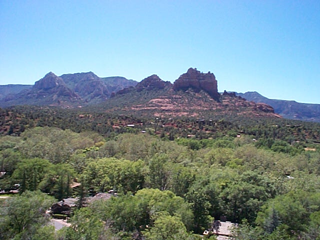 Click Pictures to Enlarge, Use Browser Back Button to Return Vacation 2001 Day: Day 4 Date: 05/22/2001 Had breakfast in the RV. Went into Sedona to do some shopping and take a tour of the town. By the time we got done shopping and got to the tour office it was sold out for the tour we wanted to take. Did some more shopping and left town. Drove from Sedona to Flagstaff then on to the Grand Canyon to visit Stacie, my daughter. Set up camp at Trailer Village campground in the park. Stacie took us out to dinner at the El Tovar Hotel (the best restaurant in the park). The pictures are the rocks around Sedona, the road between Sedona and Flagstaff (you can see four levels), the Grand Canyon from Mather Point (you can see the Colorado River and Phantom Ranch in the bottom), and Stacie at work (in the background at the cash register). Domino Scores Jim: 6 Marilyn: 7 Lowest Gas Price: $1.49 Mileage Today: 119 Mileage For Trip: 1017