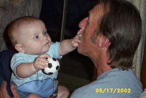 Click Pictures to Enlarge, Use Browser Back Button to Return Vacation 2002 Day: 25 Date: 05/28/2002 Well it's back to doing chores, went up on the roof, cleaned the rain gutters and re-attached the anemometer for dads weather station. Helping Dad get his computer set up for the Internet. Didn't take any pictures today so here are some of Devin.