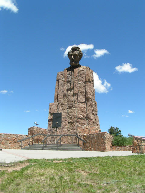 Click to enlarge picture, use back button to return Vacation 2009, Day 19, June 29 The day started with breakfast in the RV. It was back on I-80 west all the way to Rawlins WY. We are here to visit my mother-in-law, Maxine Ballard and her friend Barbara Larson. The pictures were taken at The Lincoln Monument between Cheyenne and Laramie where I-80 reaches it's highest point, 8640 feet. The monument commemorates the highest point of the Lincoln Highway, the first transcontinental highway. Domino Scores Jim: 19 Marilyn: 17 Weather: sunny, warm low 90's Lowest Gas Price: $2.349 Mileage Today: 412 Mileage For Trip: 4474
