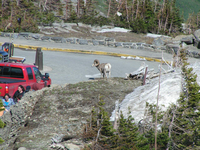Vacation 2012, Day 18 July 03 1. Logan Pass Visitor Center, Glacier Park. 2. Big Horn Sheep in the parking lot at Logan Pass Visitor Center. Click pictures to enlarge. Packed up and got back on I 94 east. Crossed the border into Minnesota. Stopped in Moorhead MN and ate breakfast at Perkins Restaurant. Back on I 94. Stopped at Alexandria MN for fuel and did a little shopping at Wal-Mart. Back on I 94 to Clearwater MN where we will spend the night at St. Cloud / Clearwater RV Park. Grilled Halibut for supper. Domino Scores Jim: 48 Marilyn: 45 Weather: Sunny, Hot and Humid Lowest Gas Price: $3.349 Mileage Today: 191 Mileage For Trip: 4170 Copyright 2012
