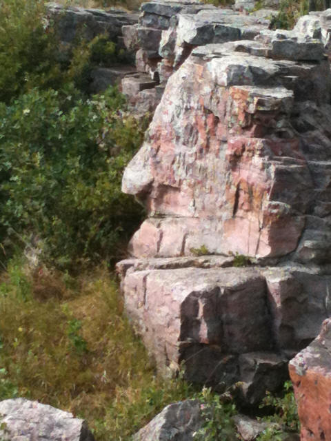 Vacation 2012, Day 38 July 23 1. Stone Face 2. Winnewissa Falls 3. The Oracle Click pictures to enlarge. Breakfast in the RV. Packed up and drove south on a number of 2 lane roads until we reached Pipestone MN where we visited The Pipestone National Monument. For countless generations, American Indians have quarried the red pipestone found at this site. These grounds are sacred to many people because the pipestone quarried here is carved into pipes used for prayer. Many believe that the pipe's smoke carries one's prayer to the Great Spirit. The traditions of quarrying and pipemaking continue here today. After visiting the monument we ate supper at Lange's Cafe and then got a camp site at the Pipestone RV Campground. Domino Scores Jim: 74 Marilyn: 74 Weather: Sunny then clouds and a few rain drops, Hot and humid. Lowest Gas Price: $3.399 Mileage Today: 231 Mileage For Trip: 6426 Copyright 2012