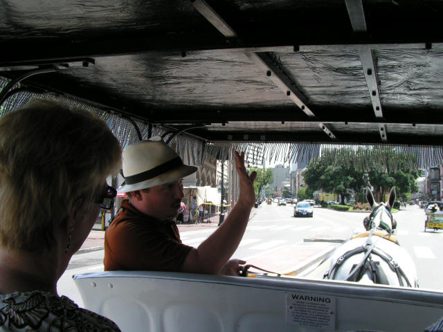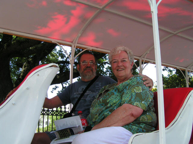 Vacation 2013, Day 13 June 20 The Steamboat Natchez, Us in the Carriage, Carriage Driver James and His Mule Moon Click pictures to enlarge Took a shuttle from the KOA to the French Quarter. Had some breakfast at Jax Brewery. Boarded the Steamboat Natchez for a two hour cruise on the Mississippi river. Lunch was provided on the cruise. We were supposed to go on a two hour bus tour of the city, but because of a mix-up with the bus we didn't get to do that. Intead we took a carriage rid around the French Quarter. After the carriage tour we walked around the French Quarter and did some shopping. Had supper at Ralph and Kacoo's Steak and Seafood and then caught the Shuttle back to the KOA. Domino Scores Jim: 22 Marilyn: 22 Weather: Warm, Humid, Cloudy with a few showers. Lowest Gas Price: Mileage Today: 0 Mileage For Trip: 2476 Copyright 2013