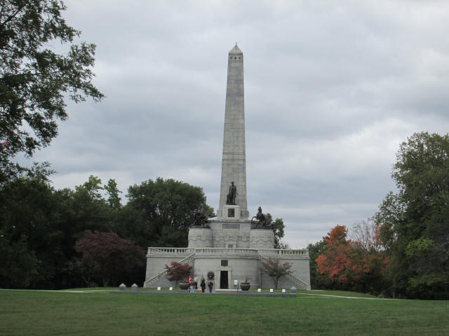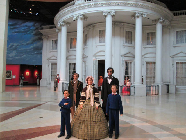 Vacation 2014, Day 43 October 03 Abraham Lincoln Museum - Abraham Lincoln Tomb Click pictures to enlarge Rained most of the night. After breakfast in the RV we headed into Springfield. First we toured the Abraham Lincoln Museum then we went across the street to Union Station and saw Lincoln: From History to Hollywood, with sets and displays from the movie Lincoln. Next we drove to Oak Ridge Cemetery to see Abraham Lincoln's Tomb. Next we stopped and ate at Sergeant Pepper's Cafe. Then back to the campground. Domino Scores Jim: 87 Marilyn: 91 Weather: Cloudy and cool, a few showers. Lowest Gas Price: $2.999 Mileage Today: 0 Mileage For Trip: 5344 Copyright 2014