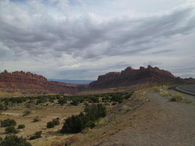 Vacation 2014, Day 61 October 21 Black Dragon Canyon from a rest stop on I-70 Click pictures to enlarge Waffles and sausage for breakfast in the RV. Packed up the RV, hooked up the truck. Drove over to the Flying J and fueled up the RV and got on I-70 west. Stopped and took some pictures at Black Dragon Canyon rest stop. Stopped for fuel again at Richfield, UT. I-70 ended and we got on I-15 south. Drove to Beaver, UT and got a place to stay at Beaver KOA. Had supper at Timberline Restaurant. Domino Scores Jim: 115 Marilyn: 115 Weather: Partly Cloudy, 70's Lowest Gas Price: $3.339 Mileage Today: 280 Mileage For Trip: 8222 Copyright 2014